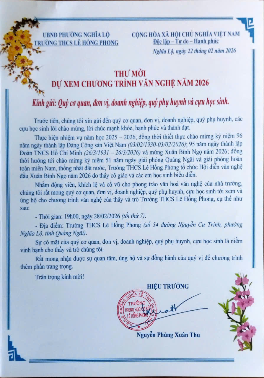 THƯ MỜI DỰ XEM CHƯƠNG TRÌNH VĂN NGHỆ NĂM 2026